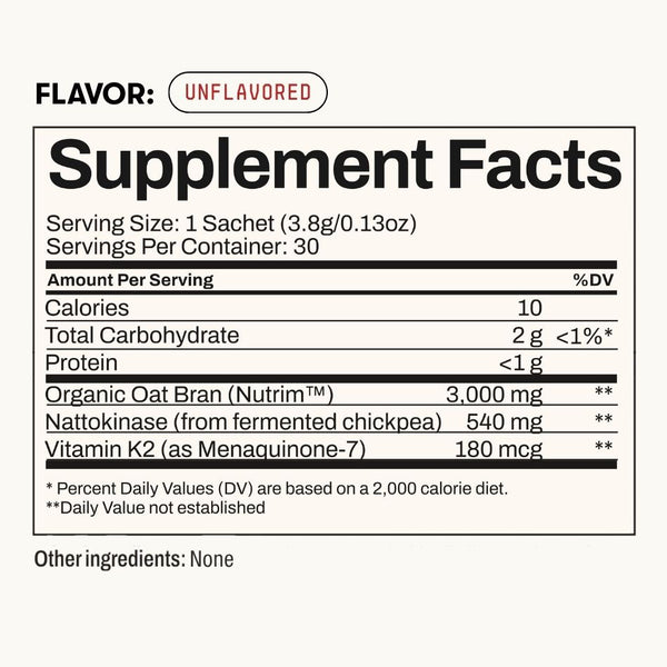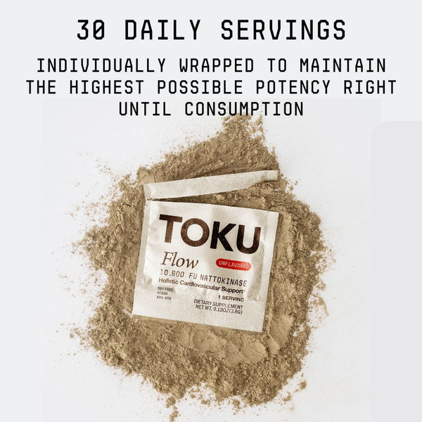 Toku Flow is a clinically relevant dose of Nattokinase, combined with two additional circulation supporting ingredients: Vitamin K2 (MK-7) and Oat Beta Glucan.